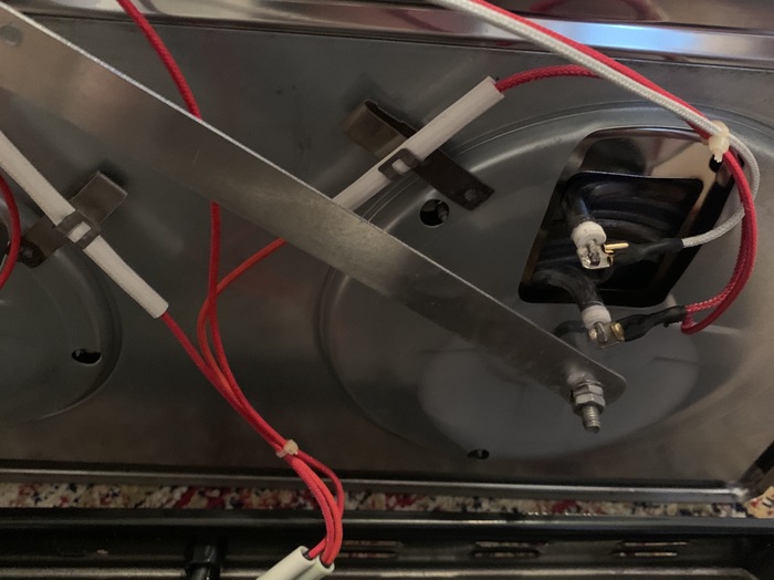 Перестала работать большая конфорка, мы открыли и внутри вот такой вид