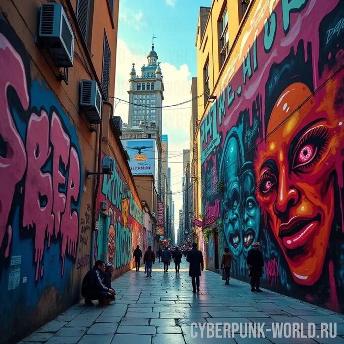 Исследование граффити как формы искусства в мире киберпанка: власть, свобода и цифровое рабство.