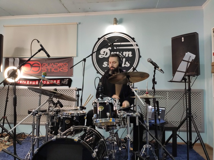 Еще в этот же период к нам в школу заезжал бабанщик группы Бригадный Подряд - Максим Колдаев. Этот был первый сольный мастер-класс от приглашенного музыканта. Поговорили обо всем, кроме барабанов. Шучу, просто была такая тема, естесственно и поиграли и ответили на интересующие вопросы. Круто время провели! Вот что я заметил, во время мастер-класса особо ничего нового ученики не узнают, но после они начинают заниматься с утроенной силой. Авторитет делает свое дело!