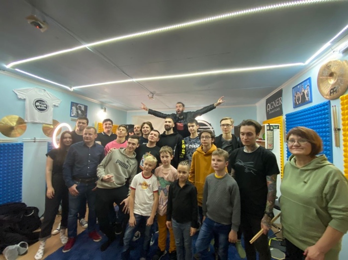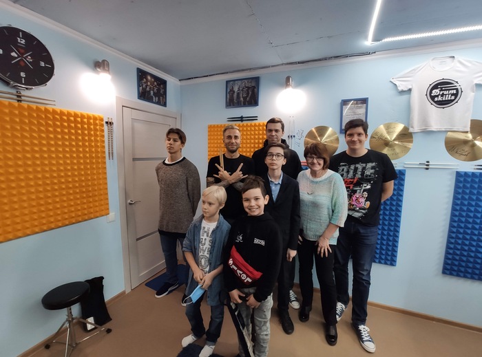 Осень 2021 началась очень бодро, работы привалило много, и новые, и старые ученики. Количество педагогов росло. Мы даже начали отказывать некоторым желающим, т.к. банально не могли согласовать время. Тут уже начала подкрадываться мысль о дальнейшем расширении, но сначала нужно было провести очередной мастер-класс. Дмитрий Фролов, группа Мельница. Как всегда, громко, классно, полезно! Про палочки тоже не забыл.