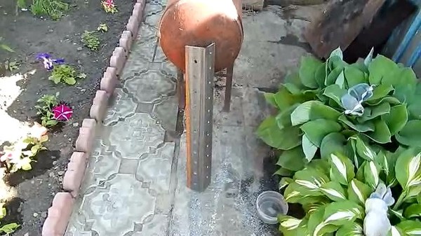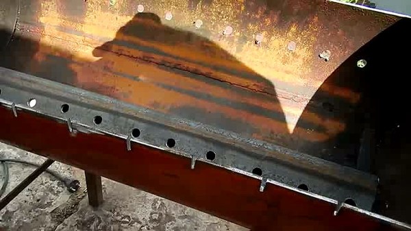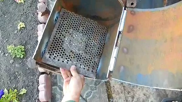 затем готовим сам мангал для пристыковки генератора и вытяжной трубы