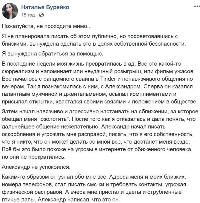 Этим постом я хотела сказать, что каждый из нас может оказаться в любой подобной ситуации. Каждый может столкнуться с самоуправством органов, со взятками, с подставами. Очень много невиновных людей попадают за решетку из-за незнания законов. Из-за нашей несовершенной системы правоохранительных органов, где дела закрывают лишь бы закрыть, где никому не хочется разбираться кто прав, а кто виноват. Сейчас всем важна статистика и неважно, верная она или нет, главное – красивая, подходящая под требования руководства.