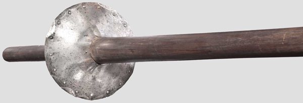 Для защиты руки впереди рукояти турнирного копья помещали особую гарду воронкообразной формы. Ее называли вамплейт или нодус. Размер вамплейт зависел от типа поединков. Для одних он был диаметром около 15—16 см, а для других уже прикрывал всю правую руку рыцаря, от запястья до плеча.