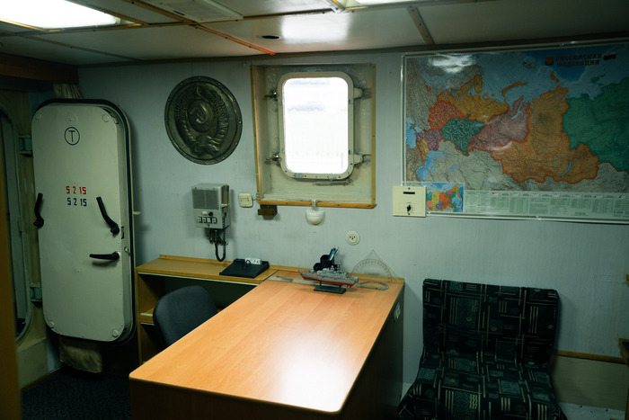 Изначально планировалось сделать на корабле музей воинской славы с разнообразными интерактивными панелями и прочими атрибутами современности, но человек предполагает, а бюджет на такое не располагает. В итоге мы с вами можем просто походить по кораблю и его каютам, но не больше. Видимо кто-то сглазил этот проект, заранее установив недалеко памятник Остапу Бендеру и Кисе Воробьянинову, и получилось как с Васюками - идея была красавенная, вот только там так и не состоялся первый в истории мироздания междупланетный шахматный конгресс. А на корабле так и не появился современный музей.