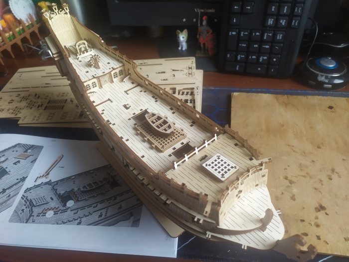 Доделываем нос и ставим палубы на полубак и корму.