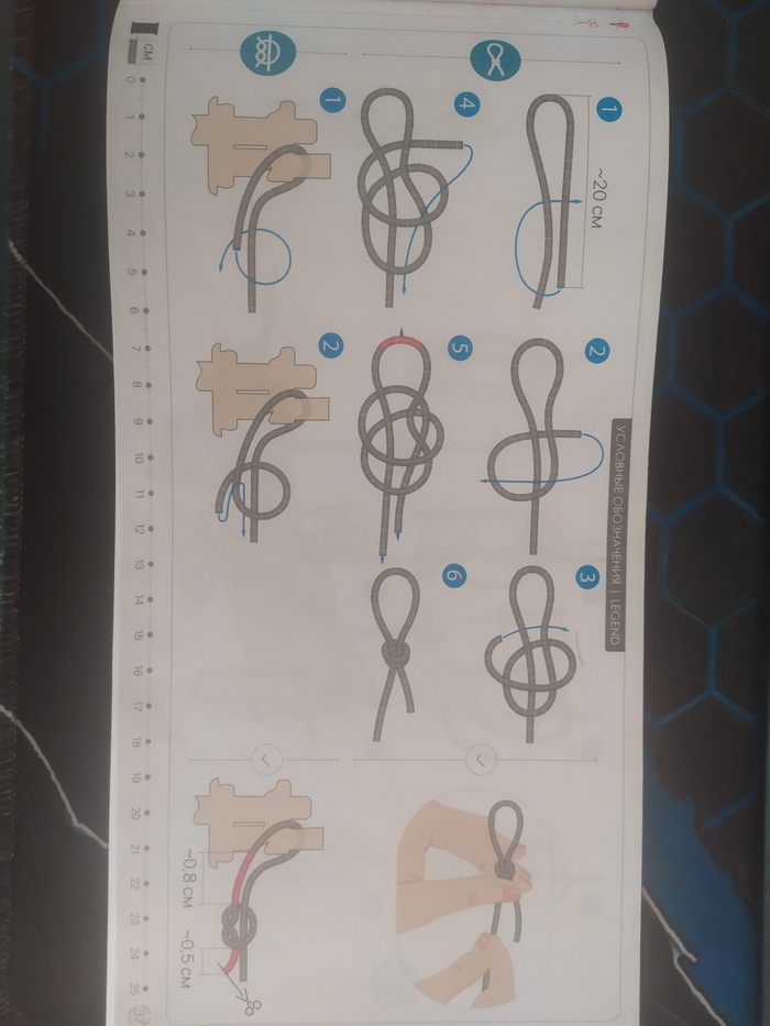 Такелаж. В инструкции показано как проложить и длина "каната" правда дана с приличным запасом. И инструкция по вязанию узлов.
