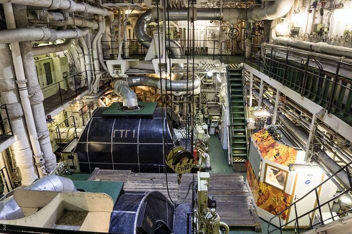 Этот гигант — самый большой и мощный атомный ледокол в мире! Его длина — 159,6 метра (как полтора футбольных поля!), а мощность — 75 000 лошадиных сил — он легко ломает лёд толщиной до 2,8 метра.