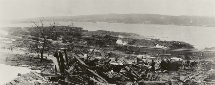Вид на разрушения после взрыва, 6 декабря 1917 года