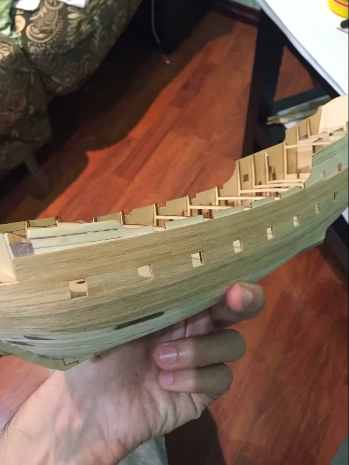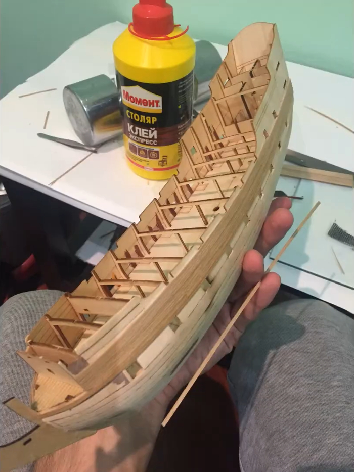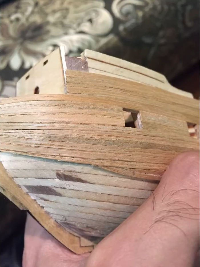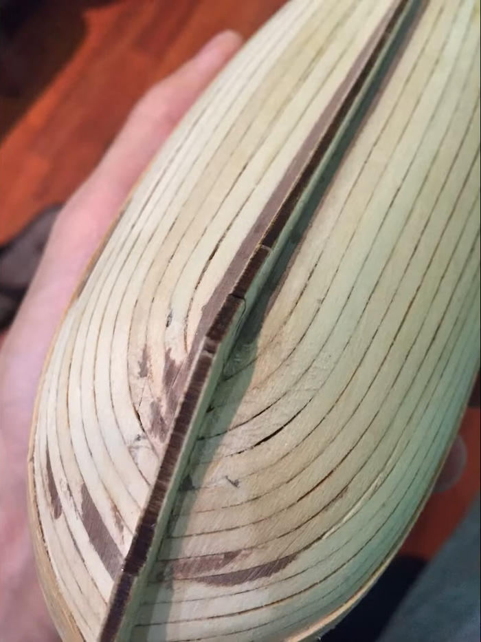 Ребят это Кит с Алика, я с ним намучился пипец, черновая обшивка вся кривая, кое как собрал и отшлифовал, далее уже от себя решил сделать еще и чистовую, но уже из шпона ясеня, варил его в кастрюле минут 15, затем нарезал на тонкие рейки, сушил, и обшивал.