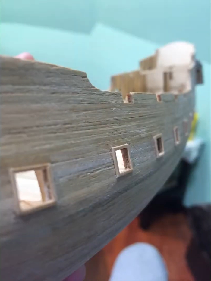 А вот и третья часть подъехала, тут я также как и во второй части, продолжал покрас, но уже с текстурой, как уже упоминал раньше, хотел сделать эффект пиратского корабля блуждающего по океану словно призрак, поэтому он весь такой старый, обросший различными организмами и минеральными частицами, образующимися на подводной части корпуса, в моем случае и в наводной, ахах, налет из водорослей, бактерий, ракушек, мшанок, губок, и всего прочего, я имитировал при помощи пасты на основе кварцевого песка.