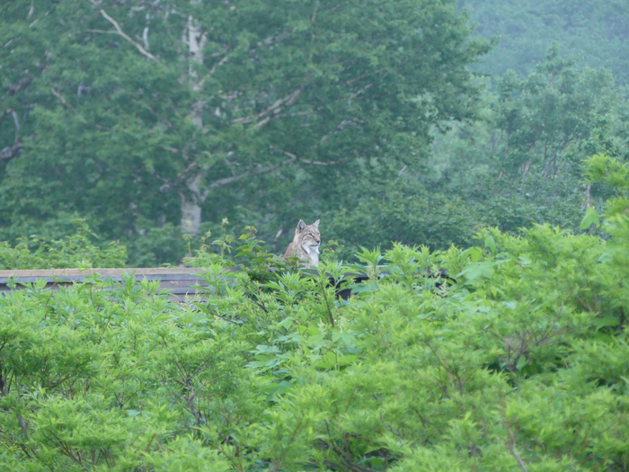 Жителей кордона в Долине гейзеров (Кроноцкий заповедник, Камчатка) переполошило редкое событие – в гости пришла рысь.