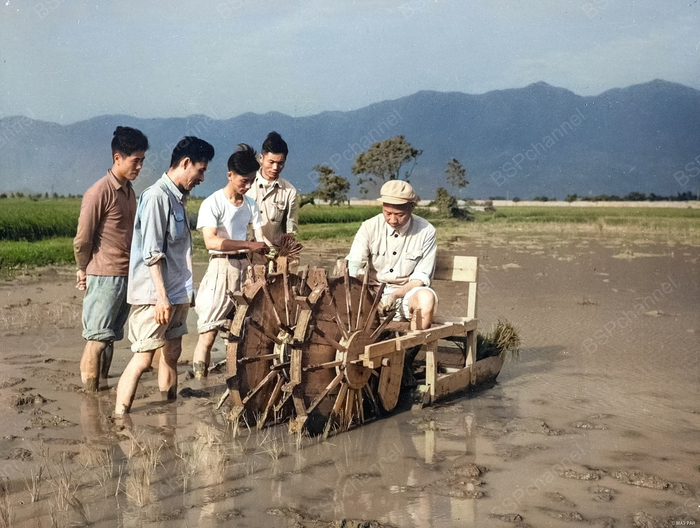 Рисопосадочная машина лодочного типа. Китай в 1950-е.
