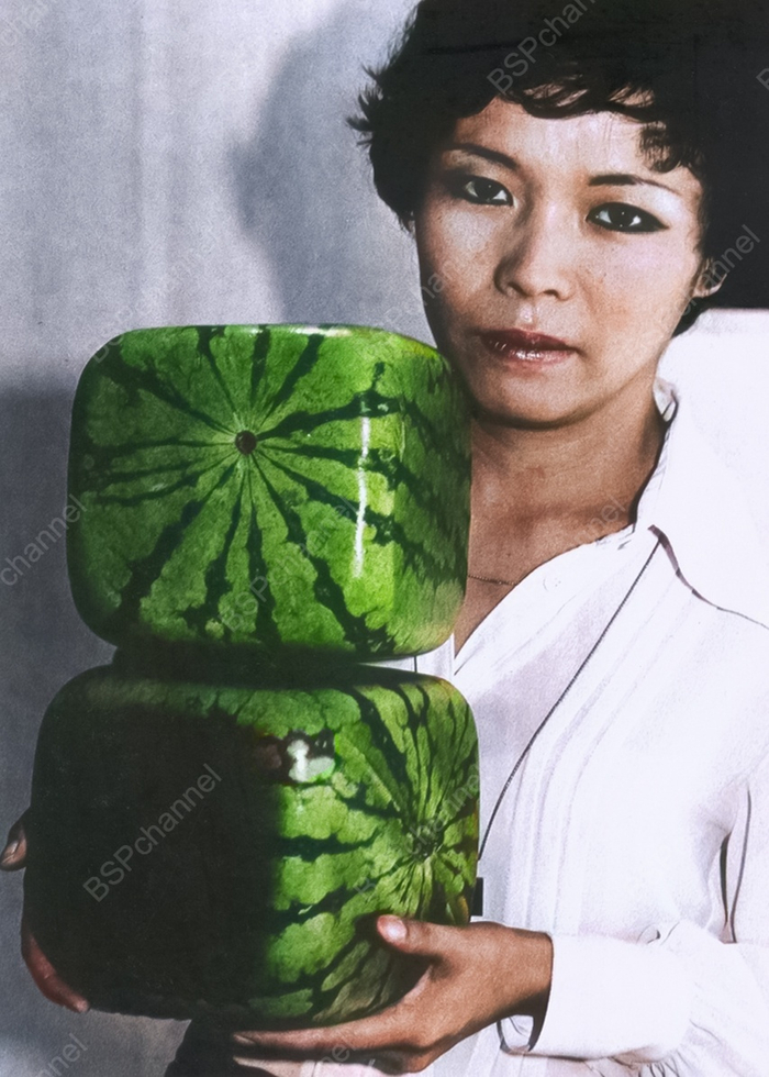 Демонстрация кубических арбузов от дизайнера Томоюки Оно. Япония, 1978 год.