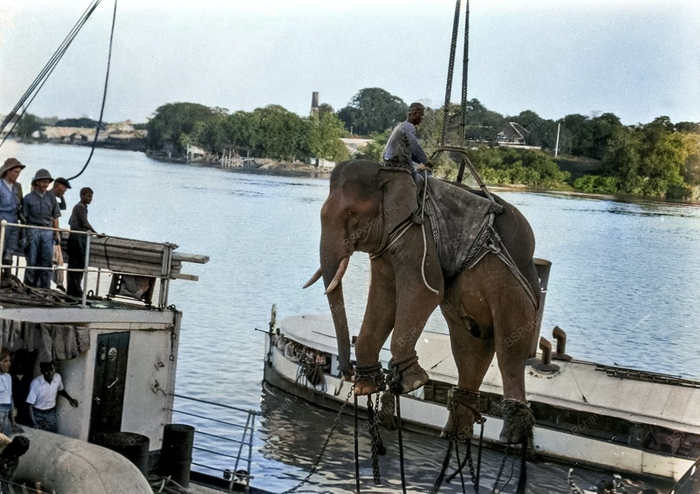 Погрузка слонов. Немецкая этнографическая экспедиция Эгона фон Эйкштедта. Андаманские острова, 1926-1929 год.