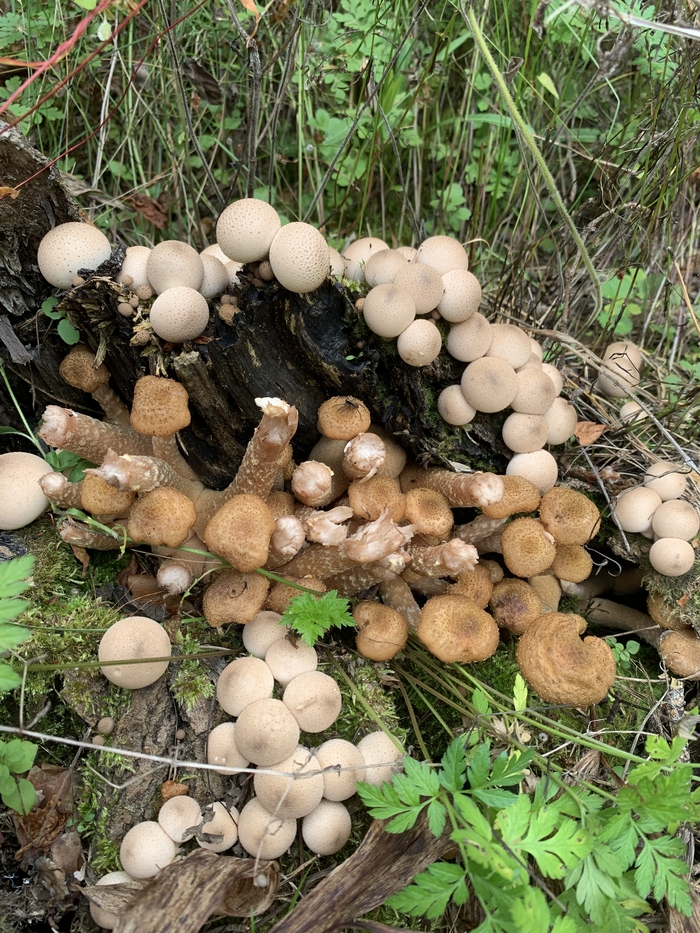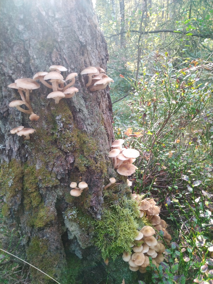 В итоге, вдвоем с супругой, и двумя гномами нарезали, по самым скромным оценкам около 100 литров опят, так же в наши сети попались несколько маслят, подберезовиков и подосиновиков (их почти не искали). Большой удачей оказалось то, что мы нашли черные лисички, никогда их раньше не видел.