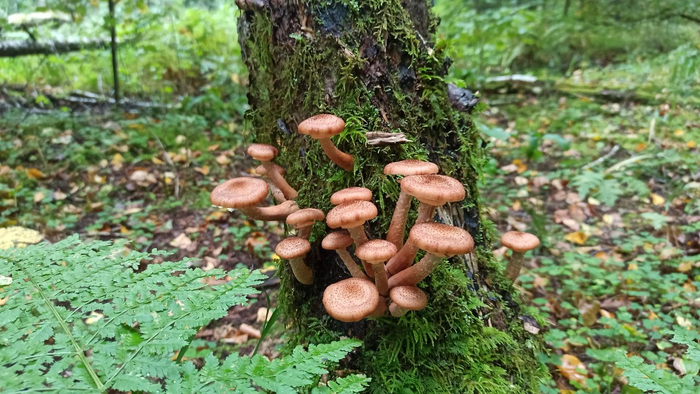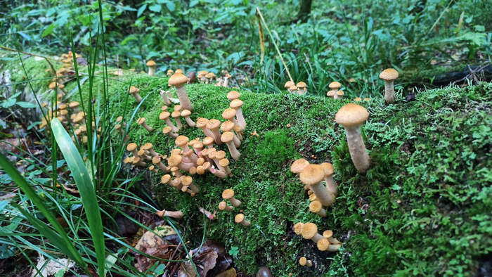 Что особенного увидел в лесу? То, что одновременно повылазили опята разных пород. Летние, осенние, тонконогии, толстоногие, посветлей, потемней. Было интересно.