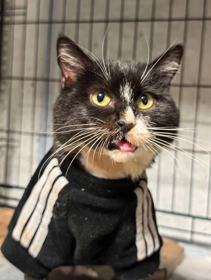 👆Самсон - взрослый кот. Но из-за проблем с языком, ему подходят только паштеты. И кормить его надо с ложечки.