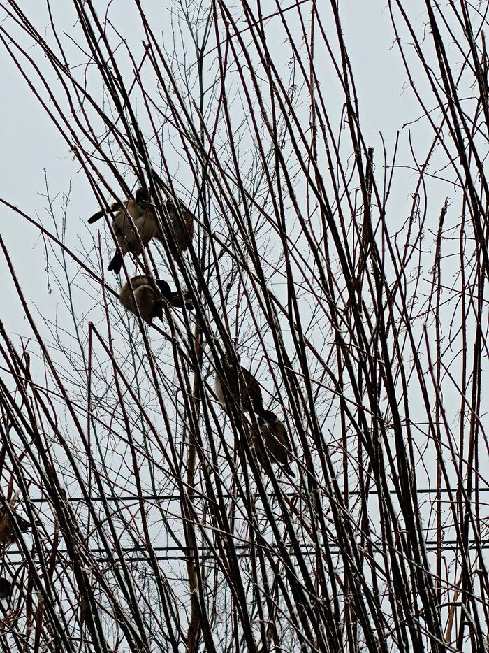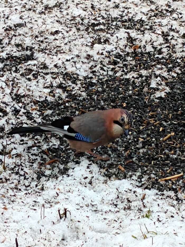 Всем привет. Сейчас тепло и птиц не так много. И они как будто прилетают сменами. Сначала воробьи, потом синицы. Ещё прилетело уже три сойки, съели весь арахис. Не успела снять, они очень быстро улетели.