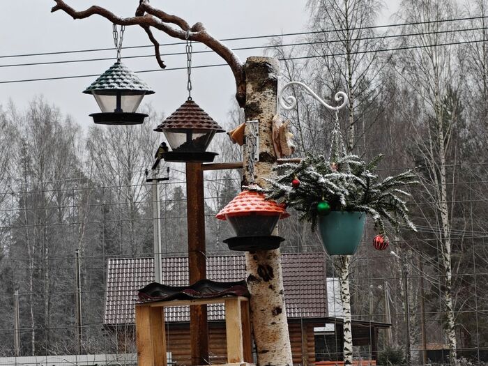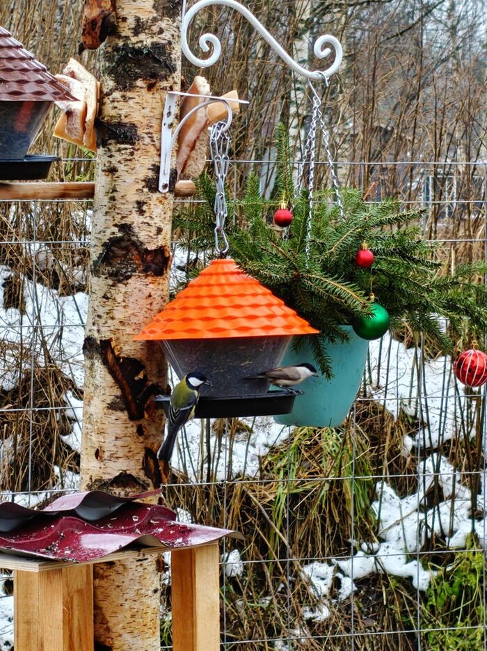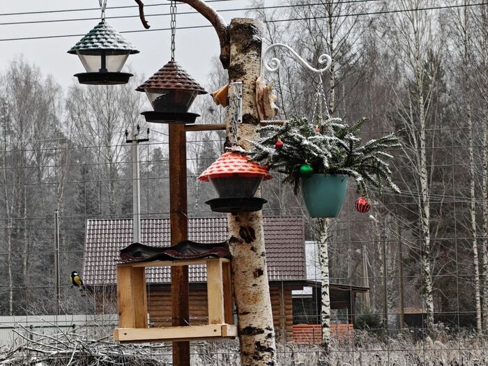 Продолжение поста «Птичья столовая готова к приему гостей. В качестве специального блюда - сырой арахис (для соек)»2