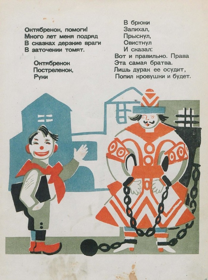 И на сказки, которые брехня по определению, всегда смотрели с большим подозрением. А большевики, де-факто забанившие сказку в 20-е, просто заимствовали эту концепцию один в один. Как пример, можно вспомнить книжку «Октябрёнок пострелёнок» Н. Агнивцева, где октябренок объясняет разным сказочным героям, что им нет места в современном мире.