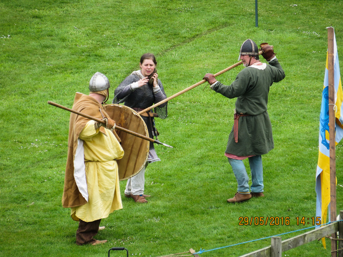 Сегодня – воскресенье. В замковом дворе – люди в средневековых одеждах. Одни торгуют сувенирчиками, другие тыкают друг в друга мечами и копьями. Эти, последние, в кольчугах, даже одна женщина. Прикольненько так.