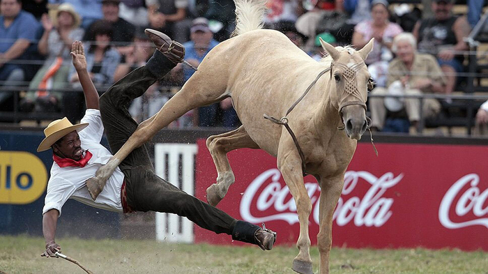 Тогда сторож по левому - раз! Бык прям весь забегал круголями, на корову косится. Тут сторож прям промеж ног ему, каак даст!