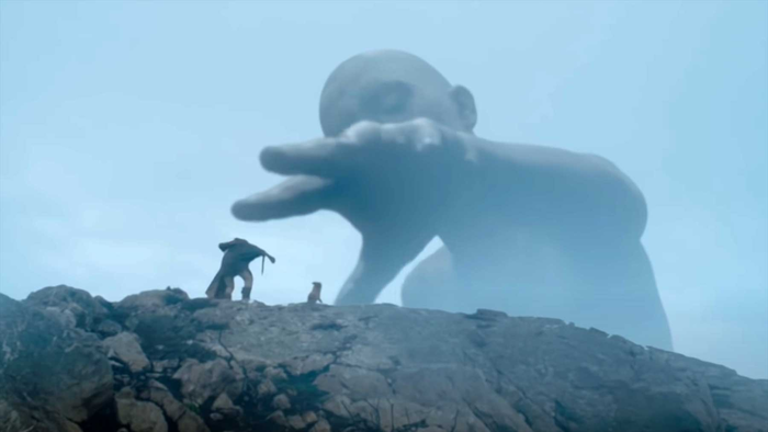 На просторах северного Уэльса Гавейн и лис находят обширную долину, покрытую туманом, через которую движутся гигантские фигуры. У многих зрителей мог возникнуть вопрос, кто это такие. В романе их не было, однако там упоминаются великаны.