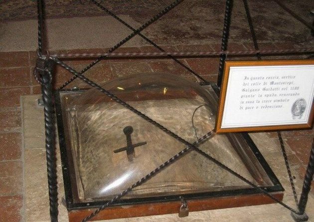 К сожалению, он доподлинно неизвестен. Некоторые рыцари пародировали легенду и оставляли свои мечи в камнях. Самый известный из них сегодня находится в Аббатстве Святого Гальгано. По слухам, его оставил там основатель церкви.