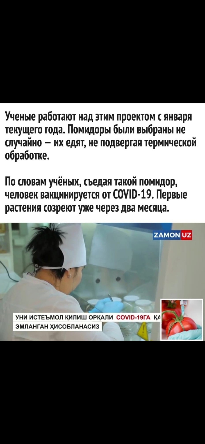 Ученые в Узбекистане создали съедобную вакцину от COVID-19 на основе томата, она называется TOMAVAC