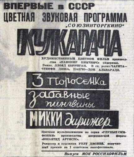 Звучит неожиданно и немного нарушает привычную картину мира, но в 1935 году на I Московском международном кинофестивале советскому зрителю официально показали диснеевские мультфильмы — в том числе «Трёх поросят». Да, вот так просто. Без подполья, без шёпота, без «идеологического вреда», без самиздата. Более того, студия Диснея получила за этот мультфильм фестивальную награду. Это была короткая, почти забытая эпоха, когда СССР ещё внимательно посматривал на Запад, а анимация воспринималась как универсальный язык без паспортного контроля и политических виз. Цветная, звуковая, американская. И советская публика её видела.