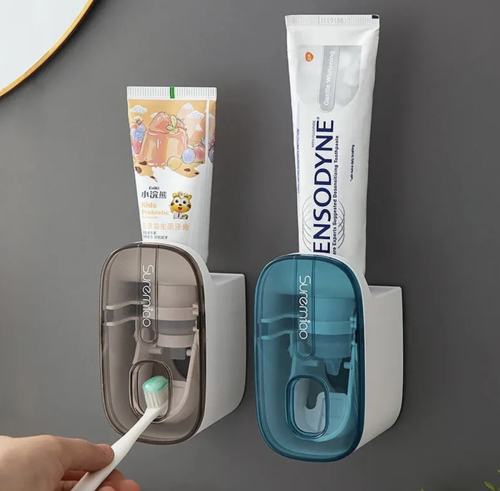 Устройство для аккуратной и экономной подачи зубной пасты. Крепится на стену и работает без электричества.