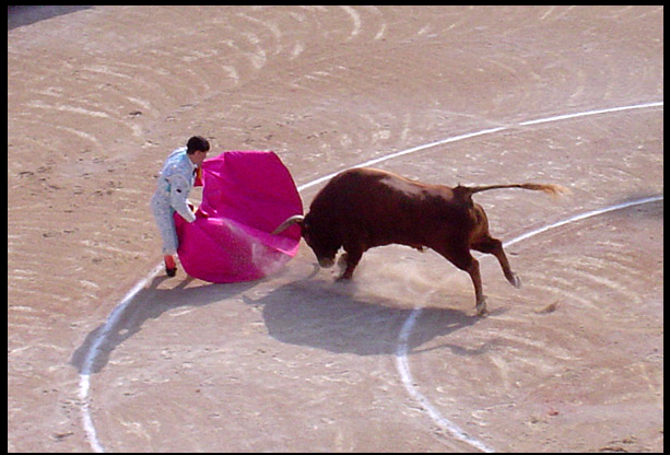Почему-то никогда не вызывают сочувствия тореодоры как бы их ни мордовали быки на арене. Мне кажется это какой-то отголосочек вселенской справедливости, которая в таком неприятном мероприятии как коррида не часто торжествует.