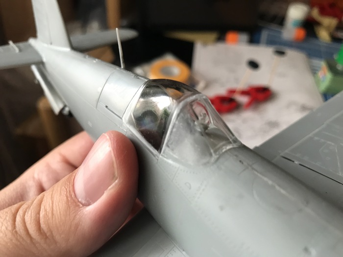 Произведена сборка, замаскирован и приклеен фонарь кабины.