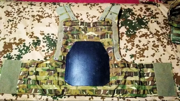 Передняя плита сидит внатяг, задняя свободно. Кевларовый пакет не подходит по размерам, если только в перед вставить кевлар от напашника.