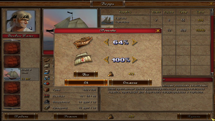 Что же, после вам нужно идти в верфь и чинить свой корабль, так как увы во время бунта он повреждён. И как же тут не содрать втридорога, что и делает хозяин верфи