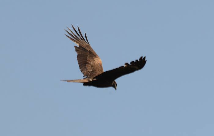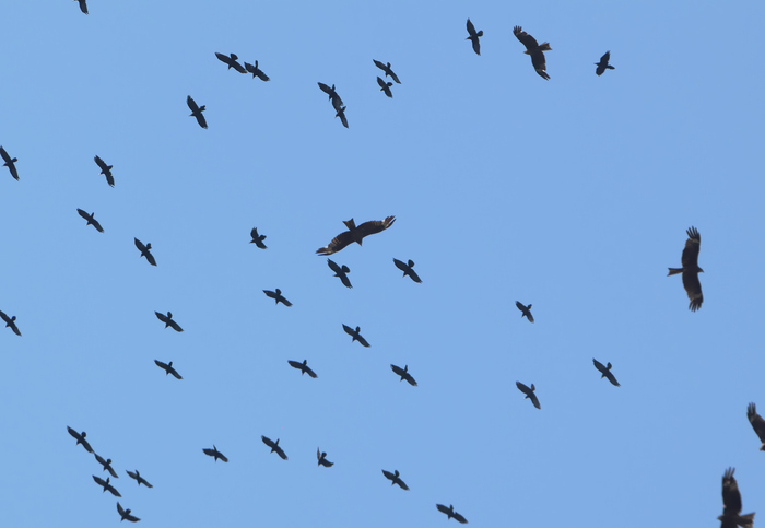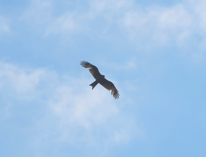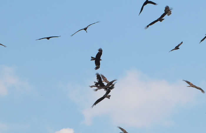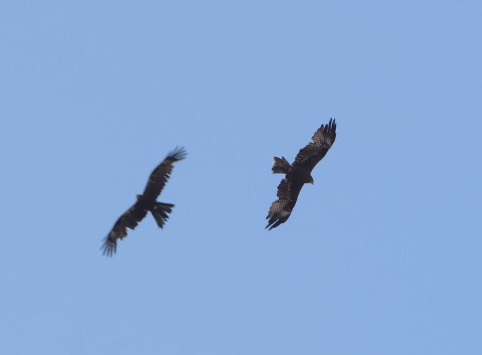 А ещё удалось увидеть забавный эпизод из супружеских отношений коршунов. Как-то коршун-самец поймал приличных размеров рыбу, и держа её в лапах, зачем-то удивительно быстро стал кругами набирать высоту. Когда он превратился почти в точку, мы поняли причину.