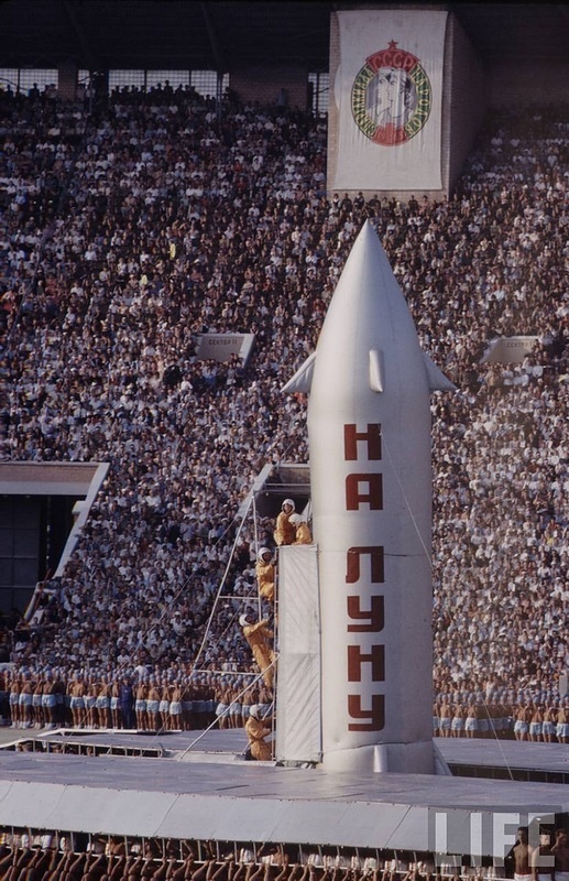 С 1956 по 1991 год в СССР проводились раз в четыре года массовые спортивные соревнования под названием «Спартакиада народов СССР». Первое впечатление от просмотра этих кадров — настоящее «помешательство» в СССР того времени на ракетах. Очевидно, это было упоение от первых успешных полётов в космос, а может — также влияние недавнего «Карибского кризиса». Хотя ракеты не имеют прямого (точнее, вообще никакого) отношения к спорту, на стадионе в Лужниках в те августовские дни 1963 года они были, безусловно, «гвоздём» всей программы. И казалось, что Луна была уже «нашей».