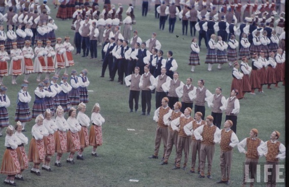 Мероприятия спартакиады проводились и за пределами Москвы. Вот как «зажигали» эстонские, если не ошибаюсь, девушки