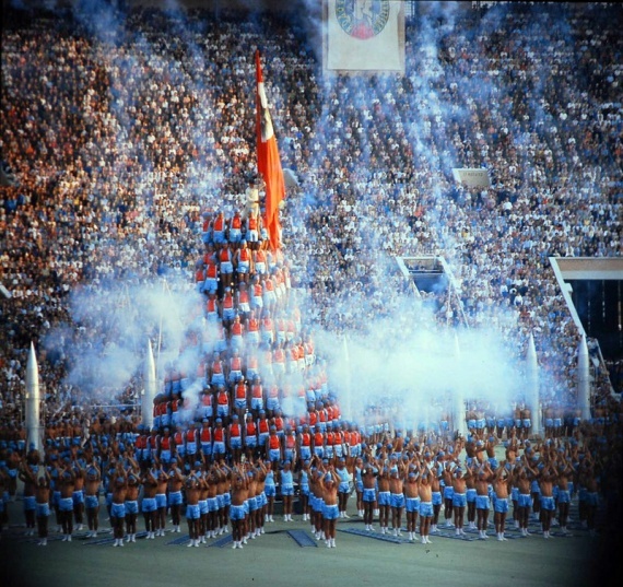Очевидно, что представление на стадионе в Лужниках — прямое продолжение физкультпарадов на Красной площади