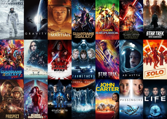 Фильмы в жанре космической фантастики по десятилетиям: 80-е, 90-е, 00-е.