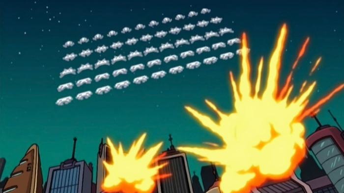Пародий и отсылок к Space Invaders в других играх было не меньше, чем самих портов и клонов. Сам силуэт пришельца, по сути - это символ поп-культуры и видеоигр в целом.