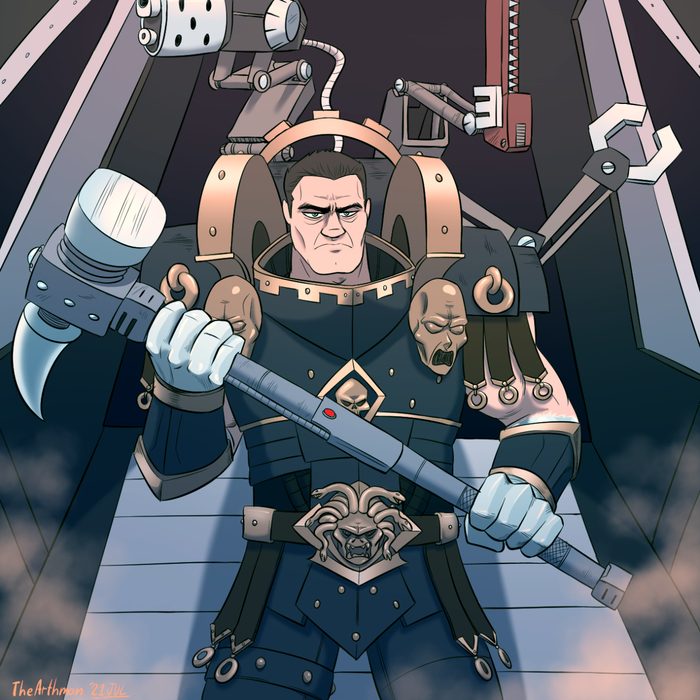 Феррус был здоровенным примархом, чьи руки выглядели будто отлитые из какого-то серебристого металла. Он не носил рукавов на броне, поэтому официально его руки считались несокрушимыми. Легион у него слегка помешан на замене плоти металлом, даже их посвящение – замена левой руки на бионическую, а их лучшие друзья – кузни и механикум. Что так же важно – [оть прагматичный Феррус был так непохож на павлина Фулгрима, они в свое время выковали друг для друга оружие, и пользовались им с большим уважением и памятью, считали друг друга друзьями и братанами, что было очень нехарактерно для большинства примархов.