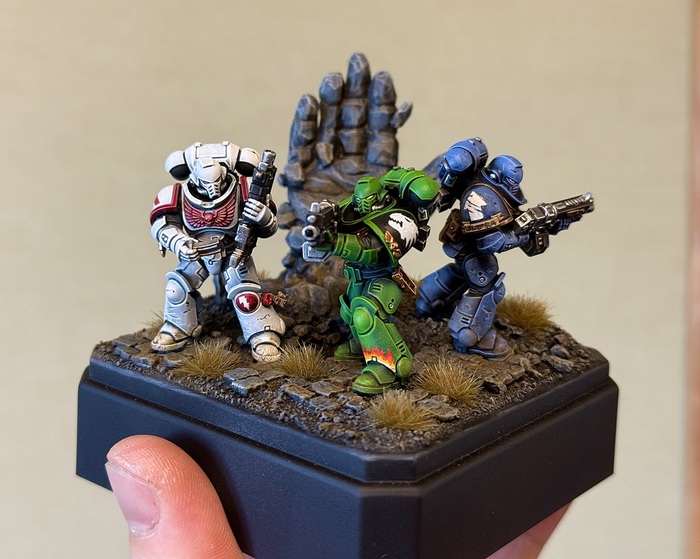 Надо ж было куда-то деть всех этих тренировочных интерцессоров. А у меня завалялась каменная рука и парочка простых дисплейных кейсов. Ну, и получилась вот такая дурка.