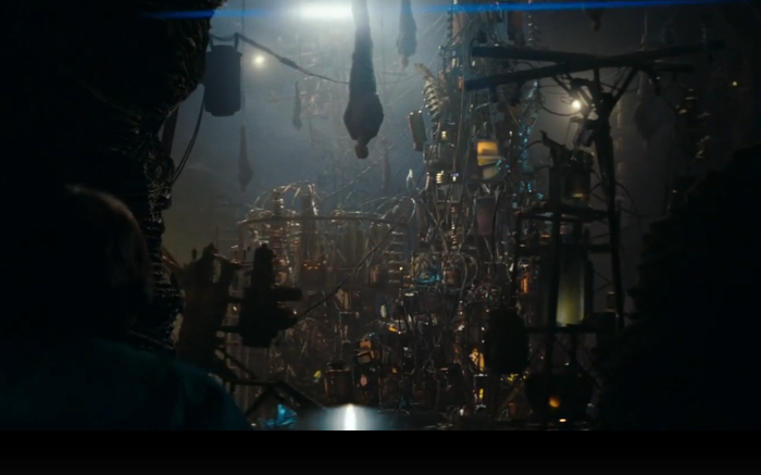 Предыстория: в 1958 году Купер совершил аварийную посадку на Земле и был схвачен военными. Его поместили в камеру предварительного заключения для наблюдения и под опеку доктора Томаса Вудворда. В 1979 году Купера перевезли на другую военную базу под командованием полковника Нелека, расположенную недалеко от Лиллиан, штат Огайо. Однако по пути на базу поезд потерпел крушение, что позволило Куперу сбежать и устроить временное логово под городом. В логове Купер собрал огромный электромагнит используя электрические и механические устройства для получения энергии созданные человеком - ДВС. генераторы, аккумуляторы, микроволновки , а также много проводов чтобы всё это соединить - для того чтобы создать огромный и мощный электромагнит который позволит соединить воедино все его элементы корабля ( кубики),на котором он покинет Землю.