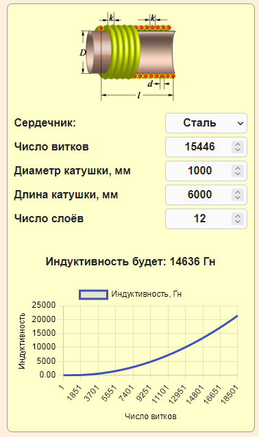 Сколько нужно было энергии Куперу чтобы создать электромагнит ? Допустим Купер наматывал катушку индуктивности на трубу центральной шахты с лестнице диаметром около 1м. Высота катушки внутри бака башни диаметром 12м пусть будет 6м на половину высоты бака , количество витков - 15446 витков, материал сердечника - сталь конструкционная. Кол-во слоёв намотки при диаметре провода 4,5мм - 15446/(6000мм/4,5мм) = 11,6 почти 12.
