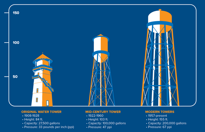 Башня современных поколений имеет высоту около 155футов или 155*0,3048м =47,24м