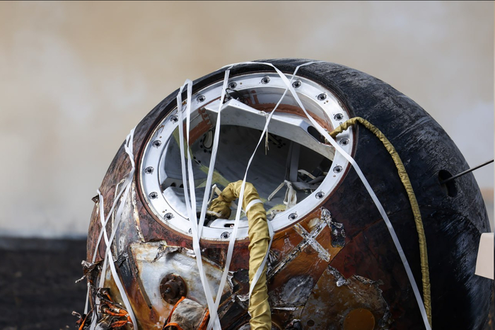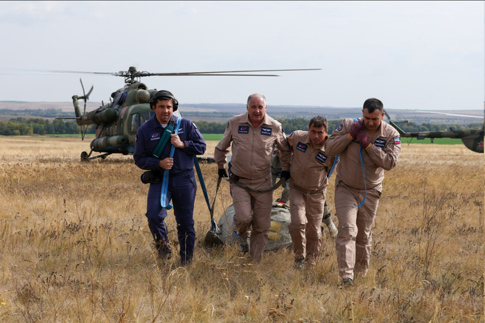 Спускаемый аппарат совершил посадку сегодня в 11:00 мск в степях Оренбургской области.