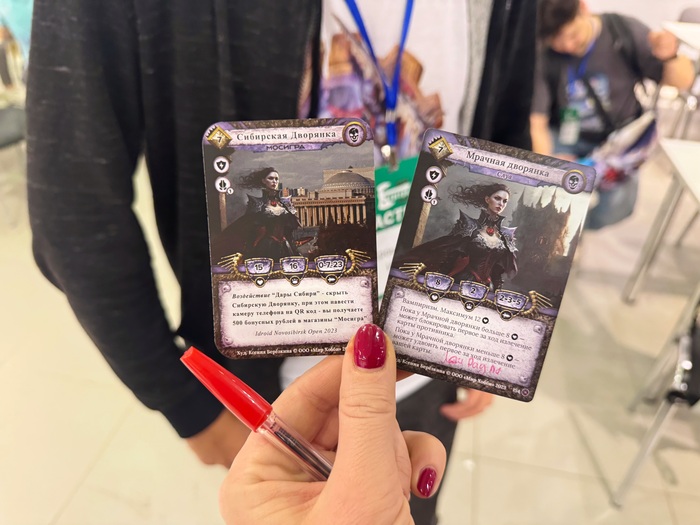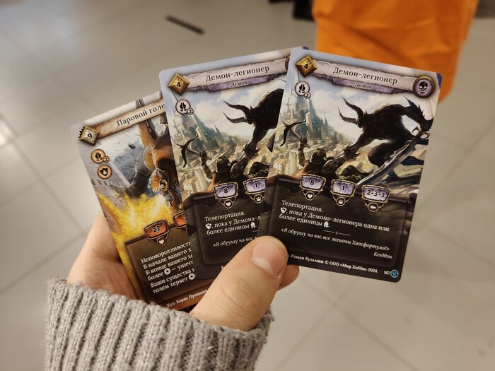Между прочим, Берсерк игра по-настоящему коллекционная, это слово совсем не спроста фигурирует в названии жанра. Каждый год выходят новые карточки, у них есть своя редкость и ценность, и игроки отдельно собирают альбомы по тому принципу, который им нравится. Самые редкие, самые первые, карты определенного художников или типажей, в общем, кому что по духу. На ивентах игроки могут обмениваться этими картами друг с другом, пополняя свою колоду или коллекцию. И карточки с автографами авторов, конечно, отдельно ценятся.