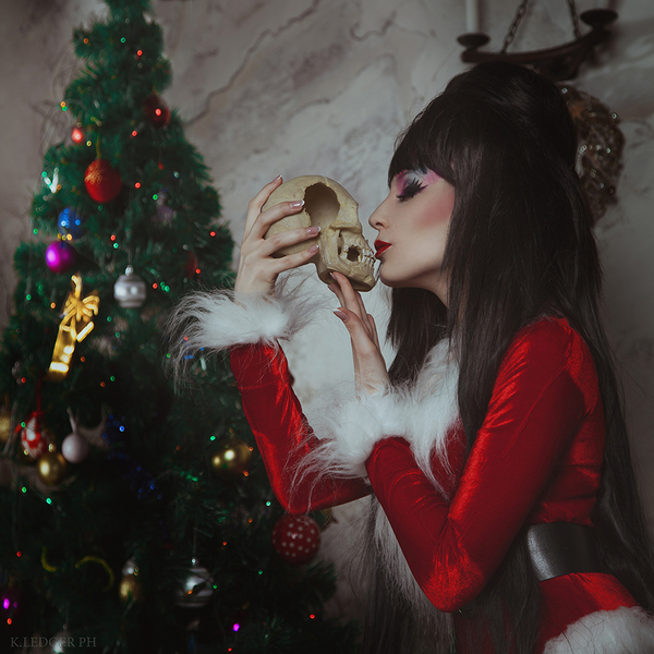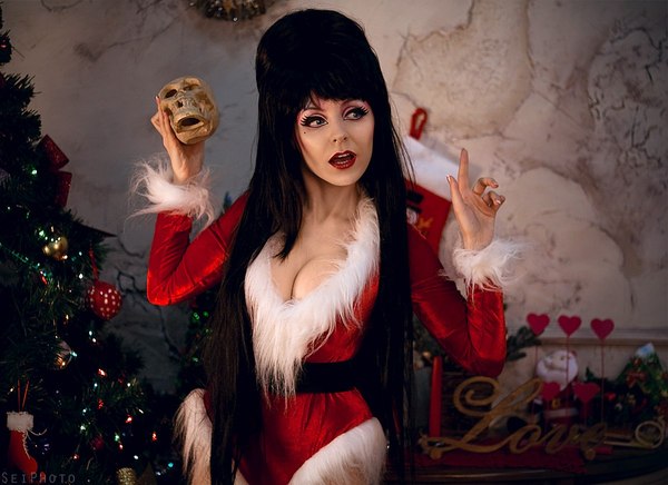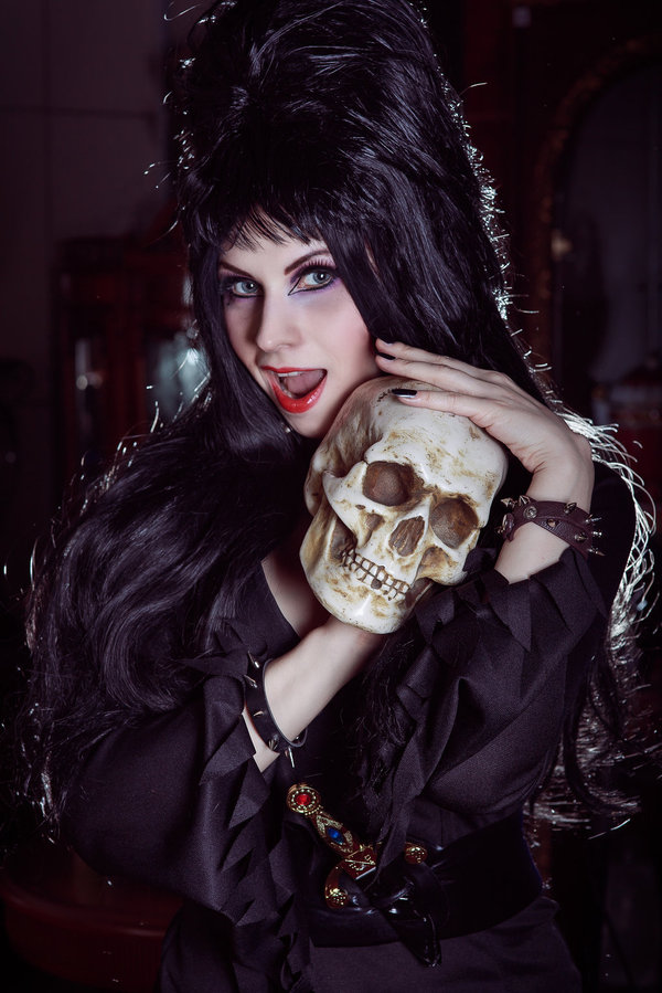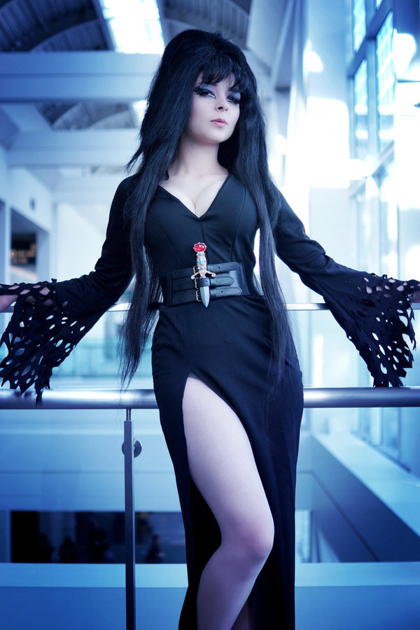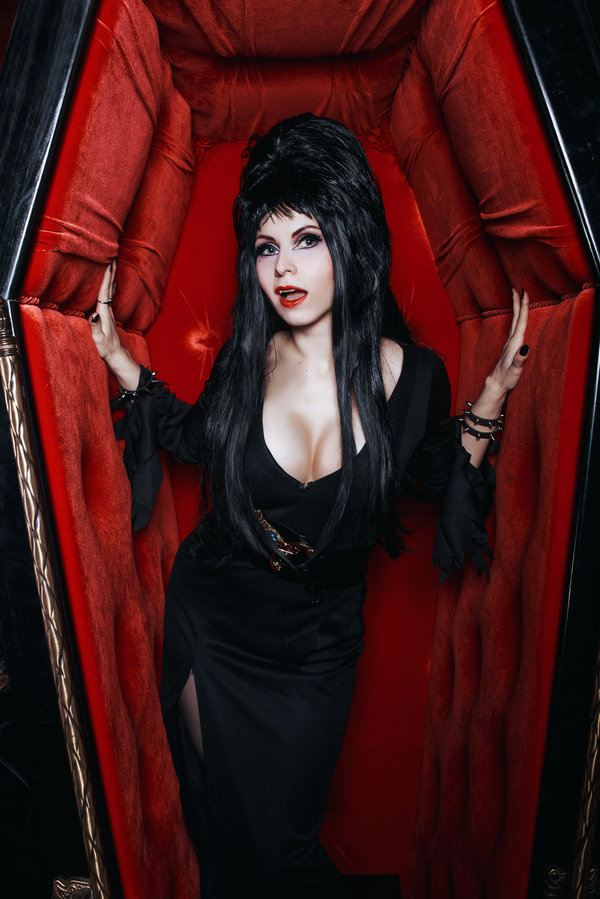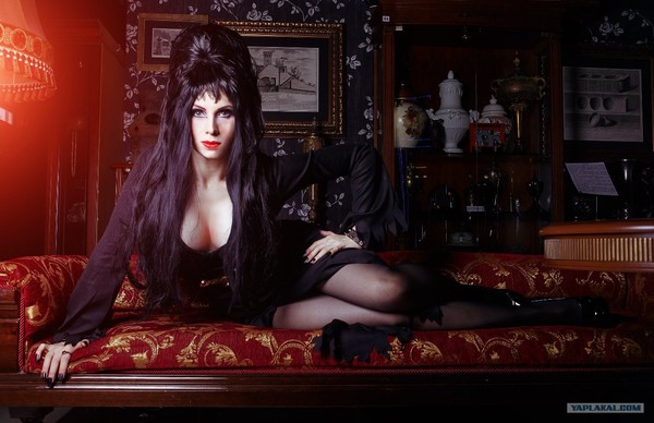 И на классический образ в длинном черном платье Эльвира Повелительница тьмы. Косплей со змейкой