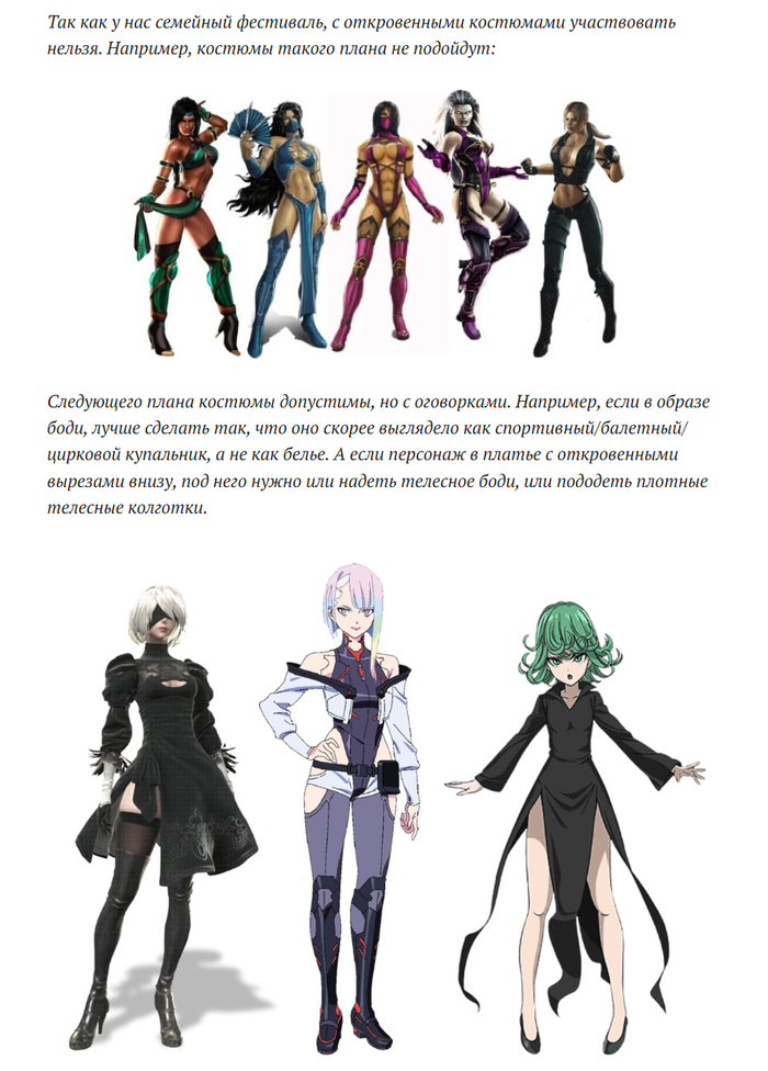И, в-третьих, так как фестиваль позиционирует себя как семейное мероприятие, на которое можно спокойно приходить с детьми — существует ограничения на степень открытости допустимых костюмов. Поэтому если вы хотели бы полюбоваться на такие образы — увы. А если вы, напротив, очень переживаете за нравственность — тогда добро пожаловать.